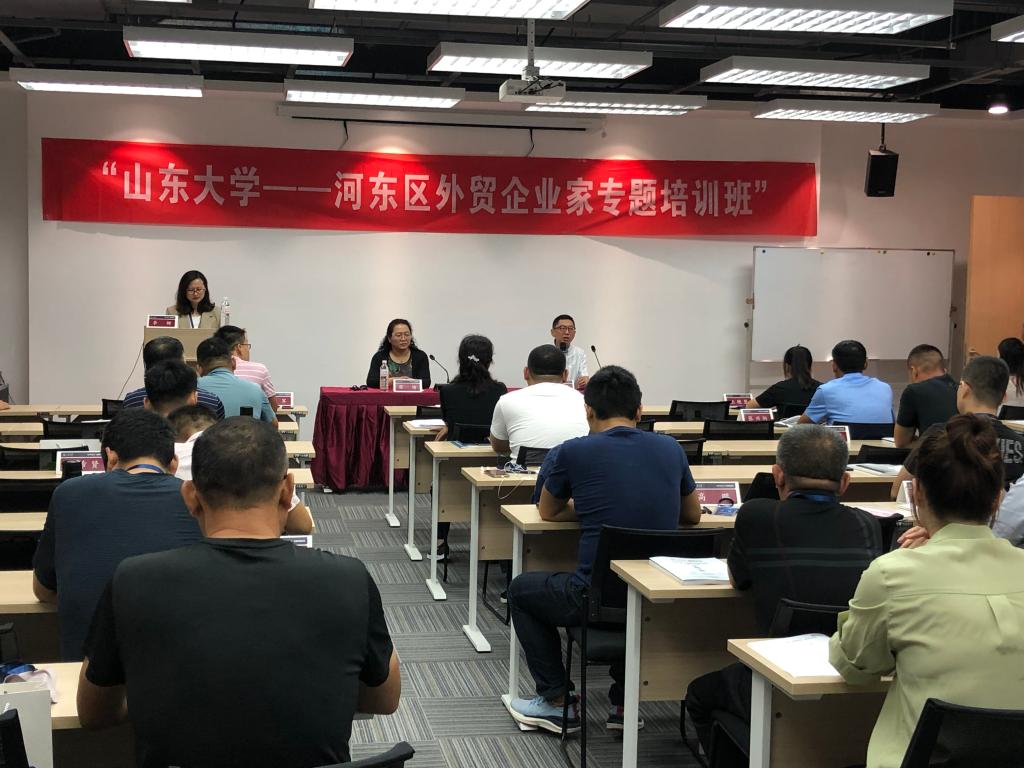 河东区商务局局长张瑜指出本次培训的目的是在于进一步提升全职外贸企业家的文化竞争力,主力打造对外开放新高企,为河东区下一步经济增量做出努力,并说明了课程设置的意义和对所有学员提出了具体的学习要求。