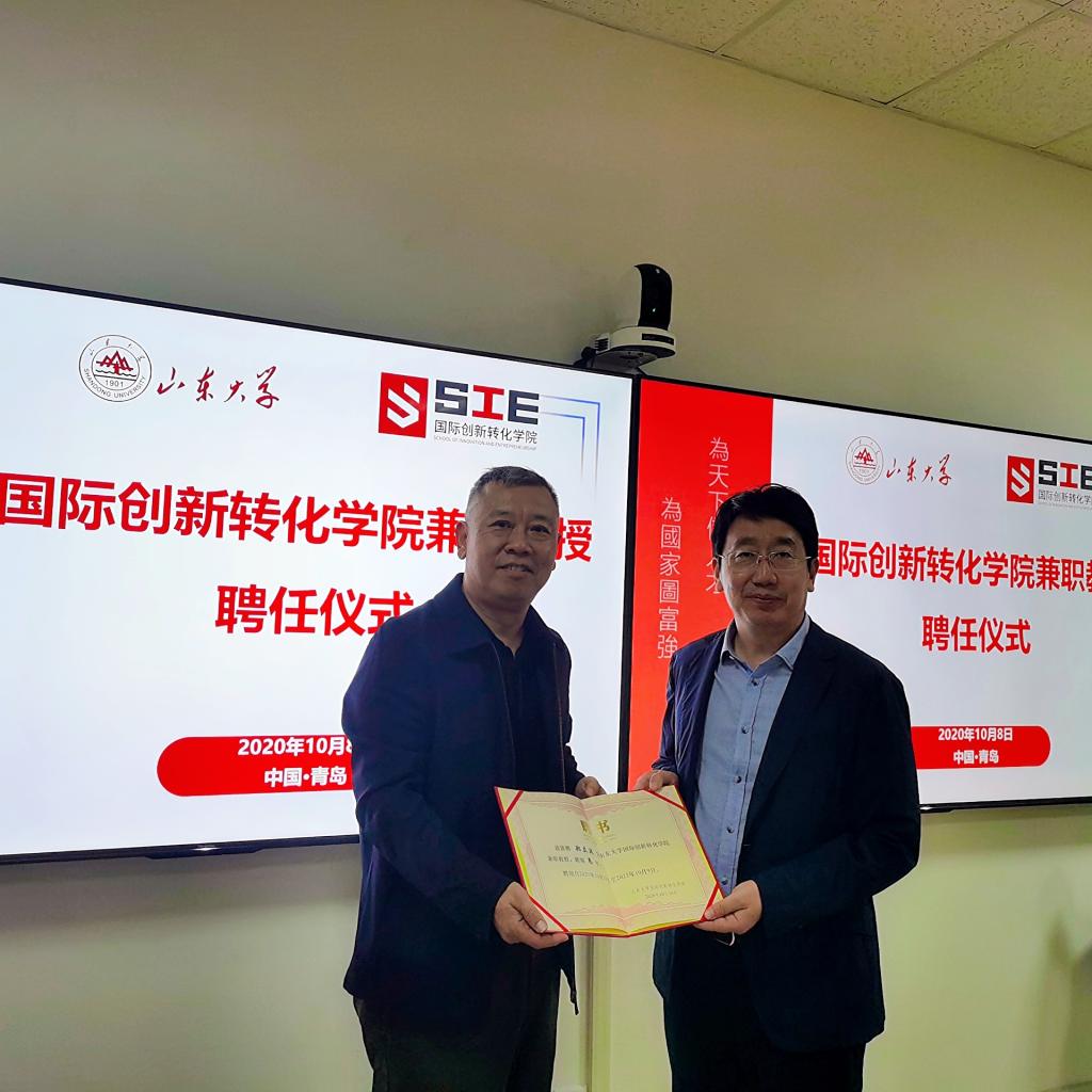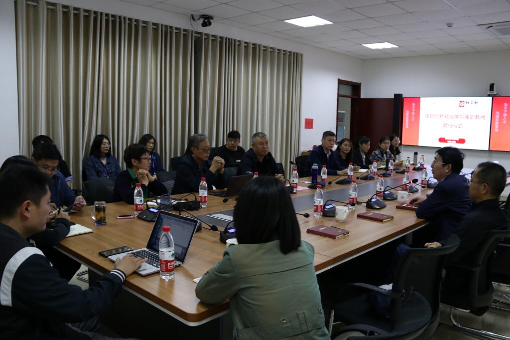 兼职教授的聘任仪式。院长陈志军、副院长乔岳、宋春玲(挂职)、院办主任郑海涛等出席活动。