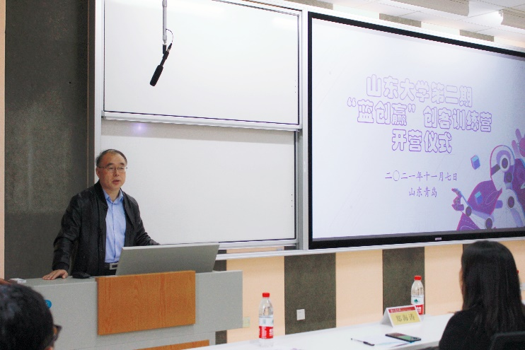 邢建平对参加训练营的各位营员表示了热烈欢迎,并且提出接下来将进一步打造青岛校区“蓝创赢”品牌活动,加强探索“课赛结合”的教学新模式,规范学生创新创业学分管理,将训练营课程与创新创业学分相挂钩,从而为参训的同学们提供更广阔的平台、更充分的支持和更优质的资源。