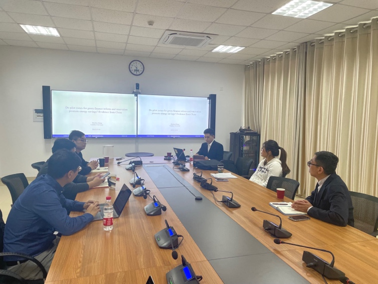 在华岗苑东楼327会议室举办创新转化研究系列学术讲座,兰州大学绿色金融研究院青年研究员张振华分享了题为“绿色金融改革创新试验区是否有利于节能?--来自中国的证据”的相关研究成果。