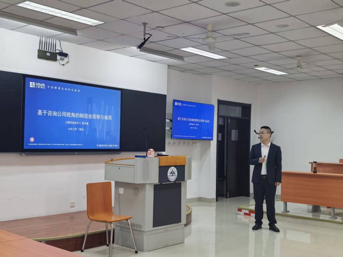 本次讲座特邀正略集团合伙人、正略咨询开发区高质量发展研究院副院长陈庆康作为主讲嘉宾,2023级、2024级创新转化实验班学生参加。陈庆康作为管理学硕士、CMC国际注册管理咨询师、中国企业改革发展研究院副研究员,聚焦制造业企业战略规划、转型升级、组织变革等核心方向,拥有丰富的一线实战经验与深刻的行业洞察,曾为多家制造业企业提供全链条专业咨询服务,助力制造业企业破解发展难题、实现高质量成长。