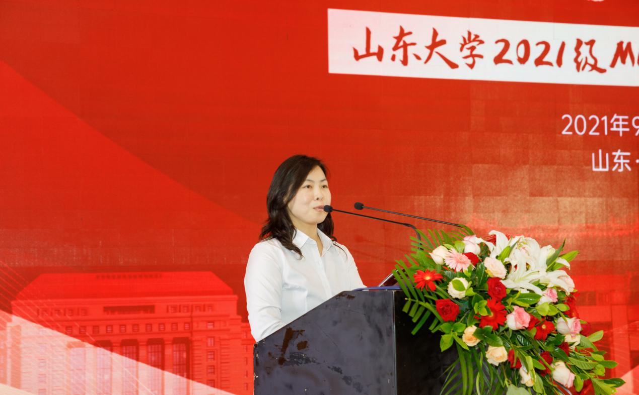 郭邦礼代表校区向2021级MBA新同学的到来表示热烈的欢迎,他分别列举了山大历史上的优秀校友、各个优势学科和社会贡献,分享了18H漫