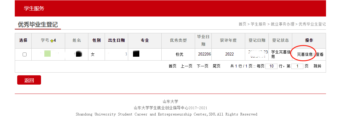 (培养单位)可在“优秀毕业生登记”栏目查看待审核学生名单,审核通过后提交至就业中心等待学校审核。