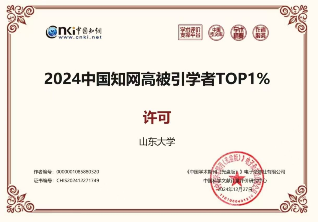 许可副教授表现突出,继2024年后,连续第二年入选高被引学者TOP1%。为我校工商管理学科(含专业学位)TOP1%的14位入选者中最年轻入选者。